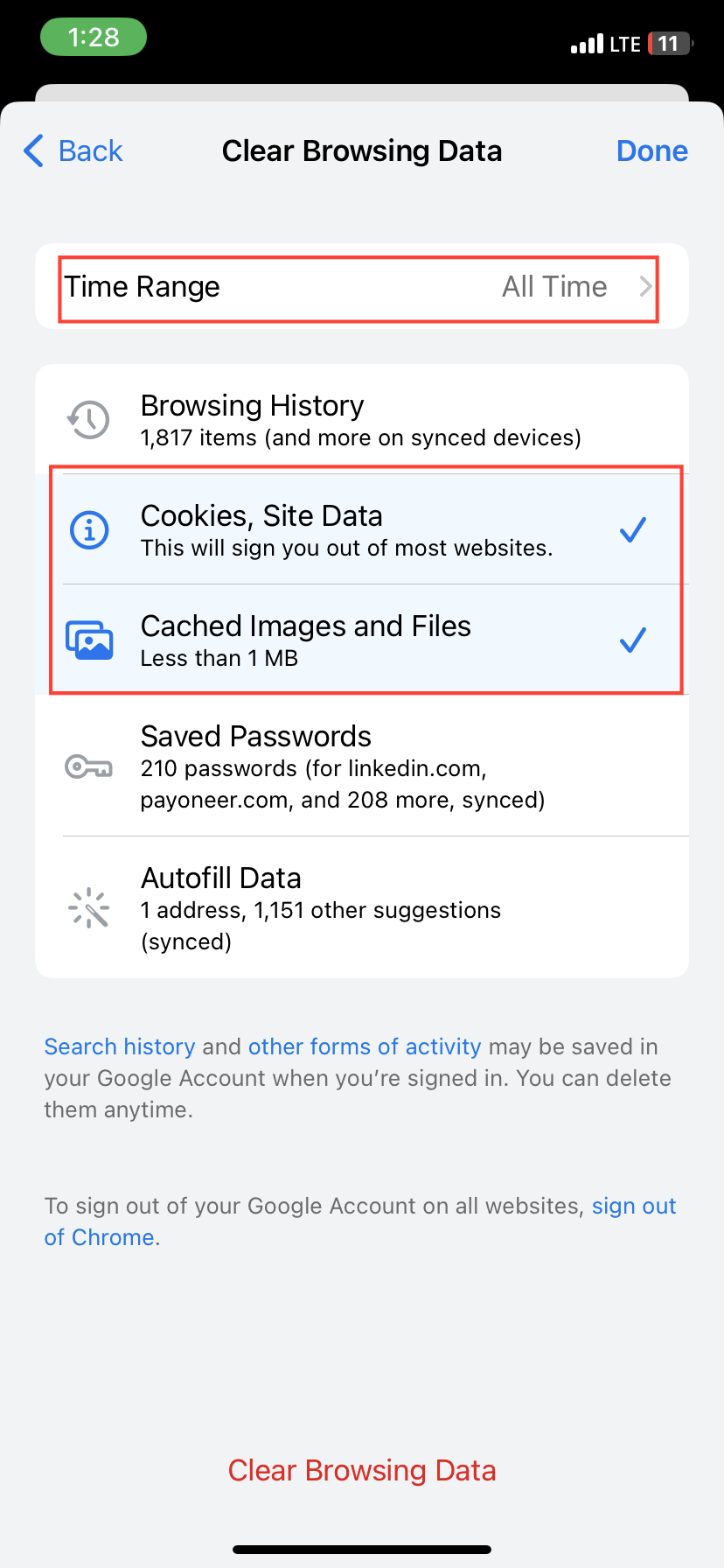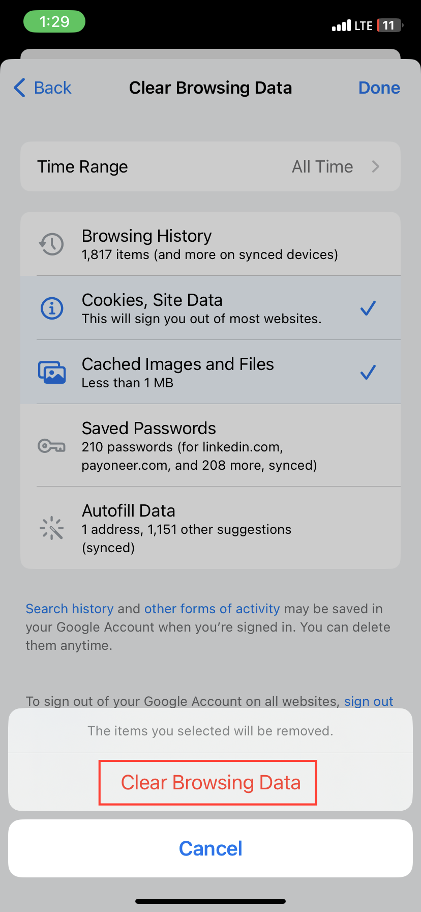 - Choose the time range (e.g., “All Time”) and make sure Cookies and Site Data and Cached Images and Files are selected.