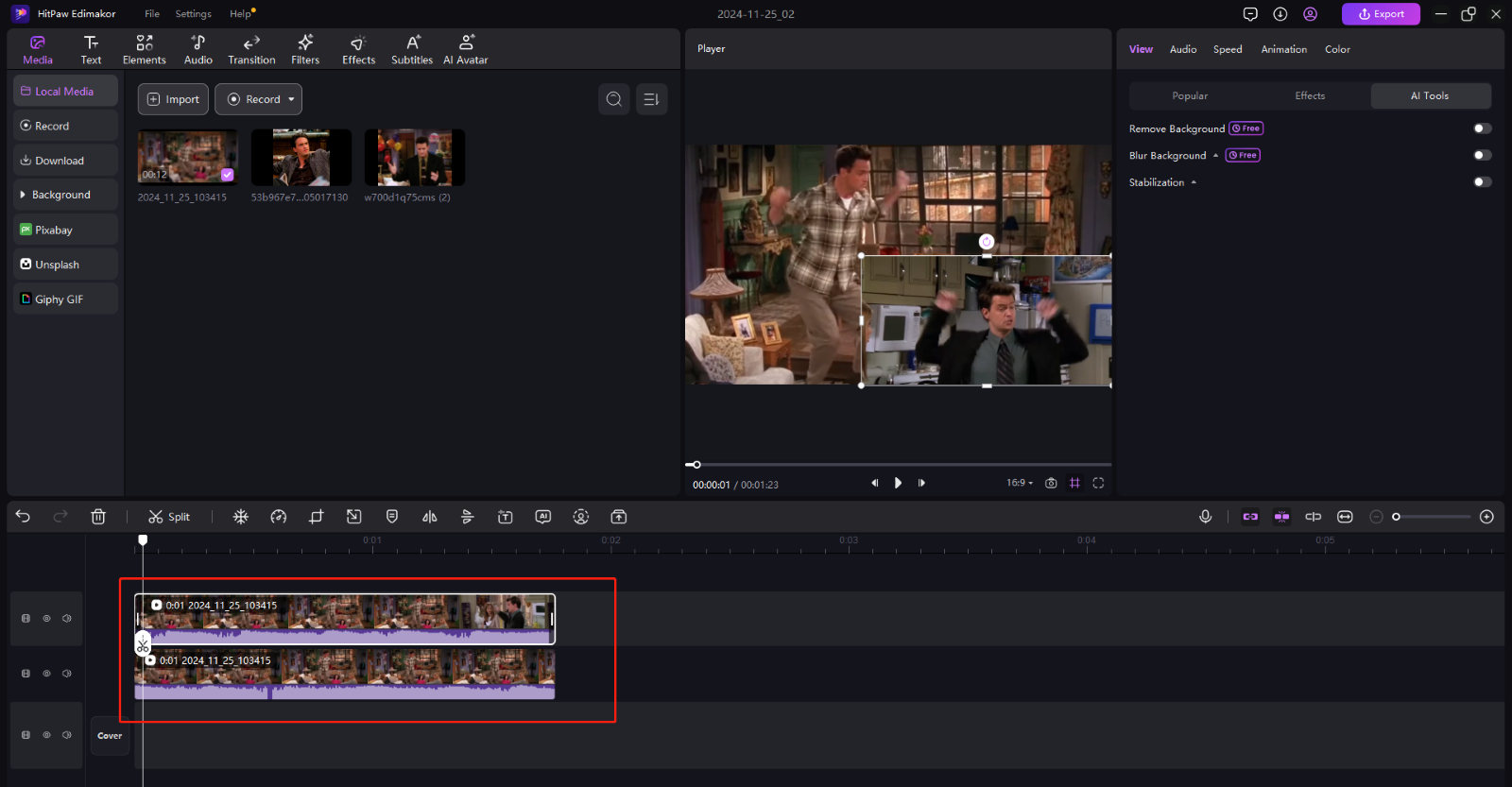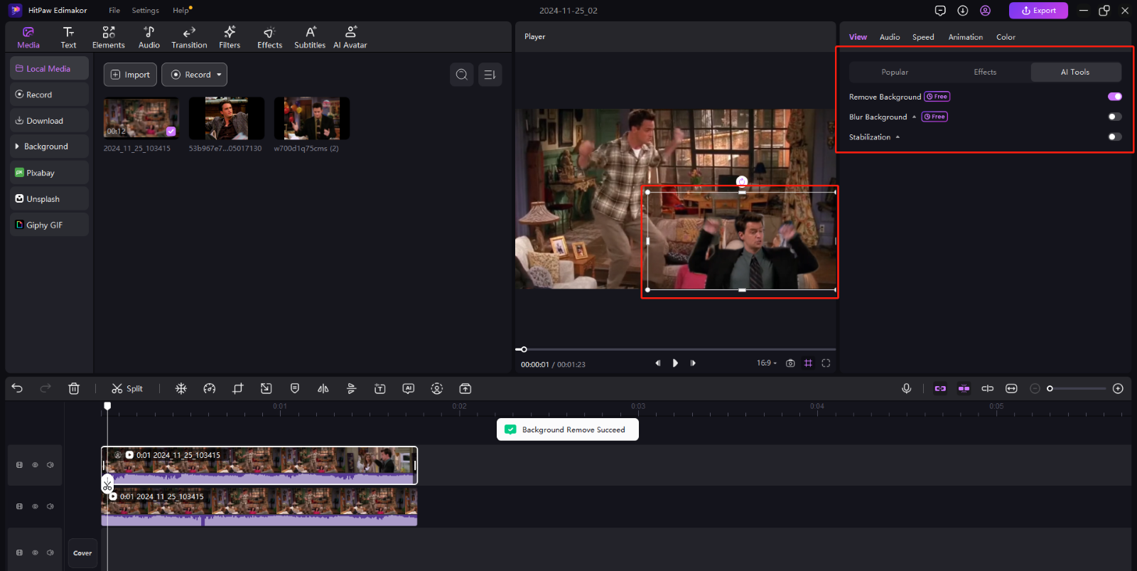 - Choose the secondary video now. Remove the video background using the ai tool.