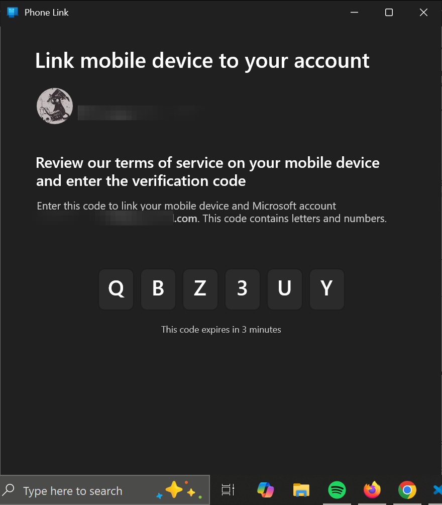 Step 5: A code will be sent to the Phone Link app on your laptop. Enter the code on your Android phone.