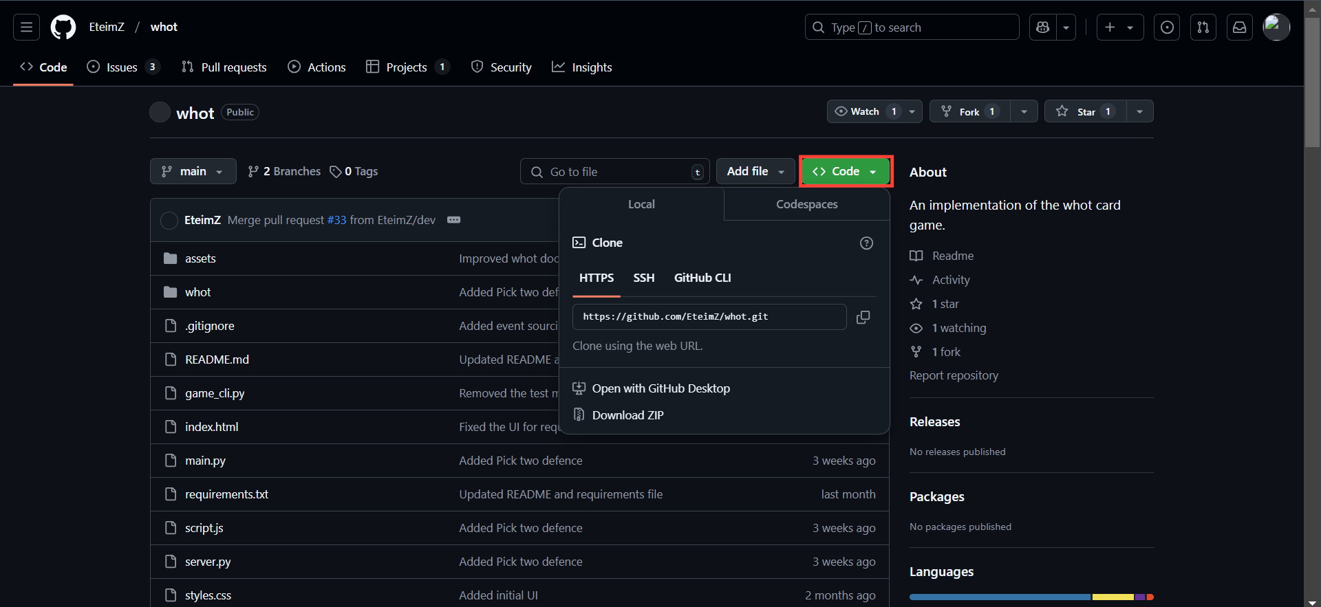 - Go to your Repositories on your GitHub account. You should see the forked repository there, open it.