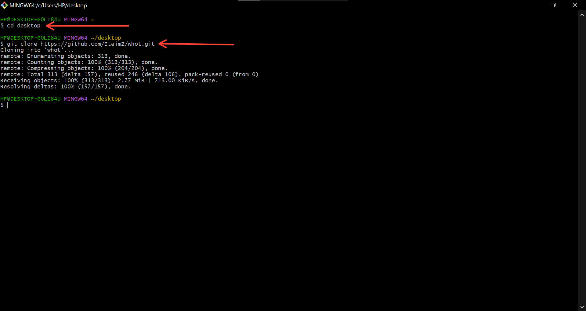 - Open git bash or any terminal of your choice, change directory (cd) to the path you want the project to be. I want to keep my copy on my Desktop, so I'll change directory into the desktop.