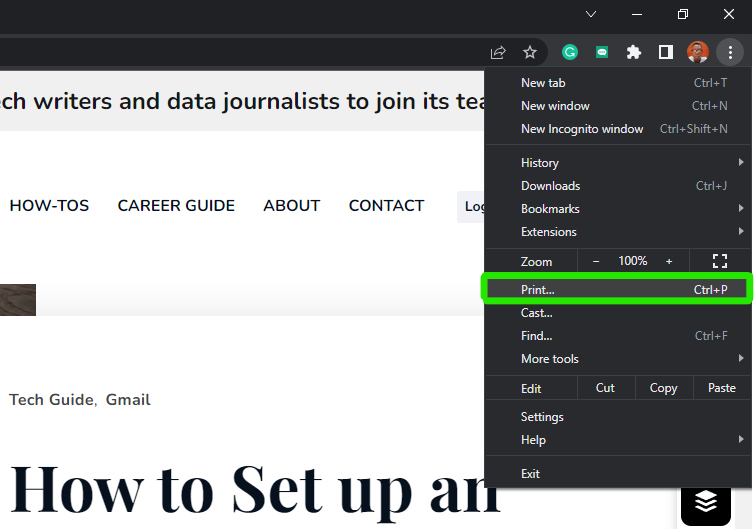3. Next, select Print.