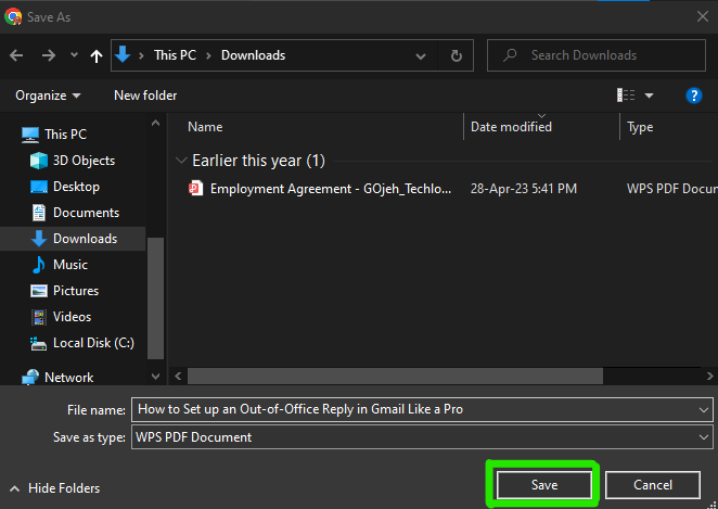 At this stage, you have the flexibility to select any desired folder location to save the file and then click Save.