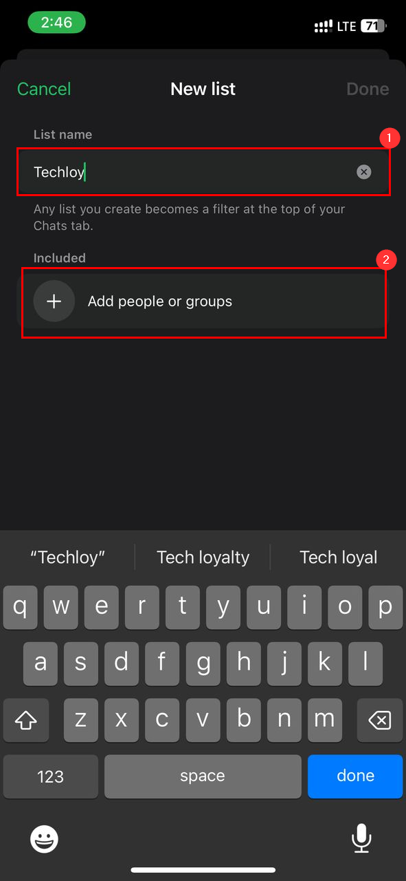 Step 4: Now, click "Done" in the top right corner. You can then access your list from the filter bar at the top of the Chats tab