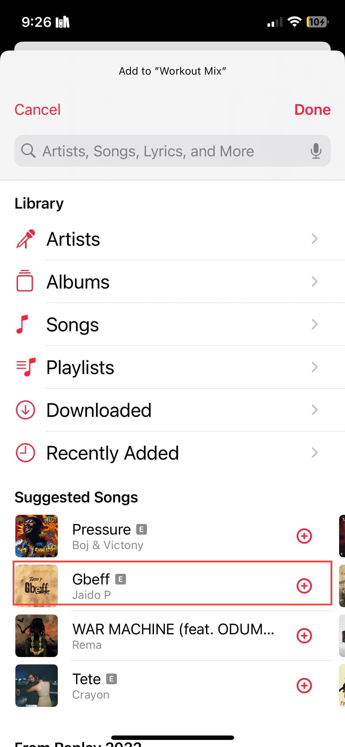 You’ll be directed to a screen where you can search for songs or browse through your library. Tap on the songs you want to include in the playlist. You can add individual songs or entire albums.