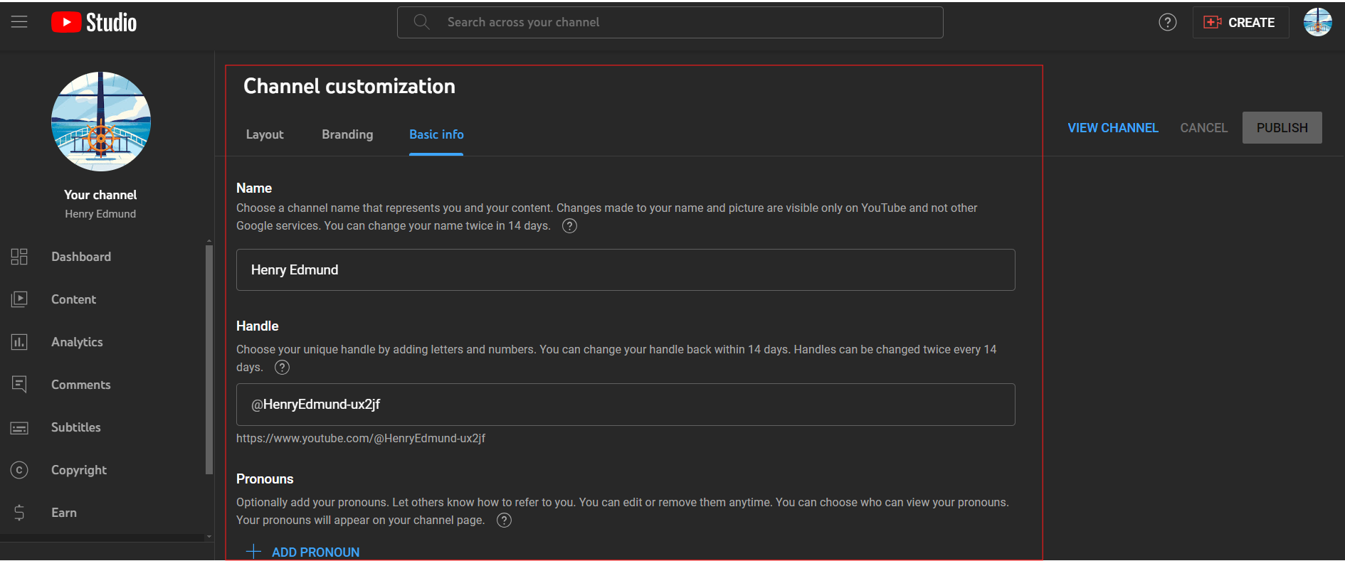 Step 3: Fill in the required information, such as your channel name and description. You can also customize your channel's profile picture and banner, add channel art, create playlists, and organize your videos at this stage.