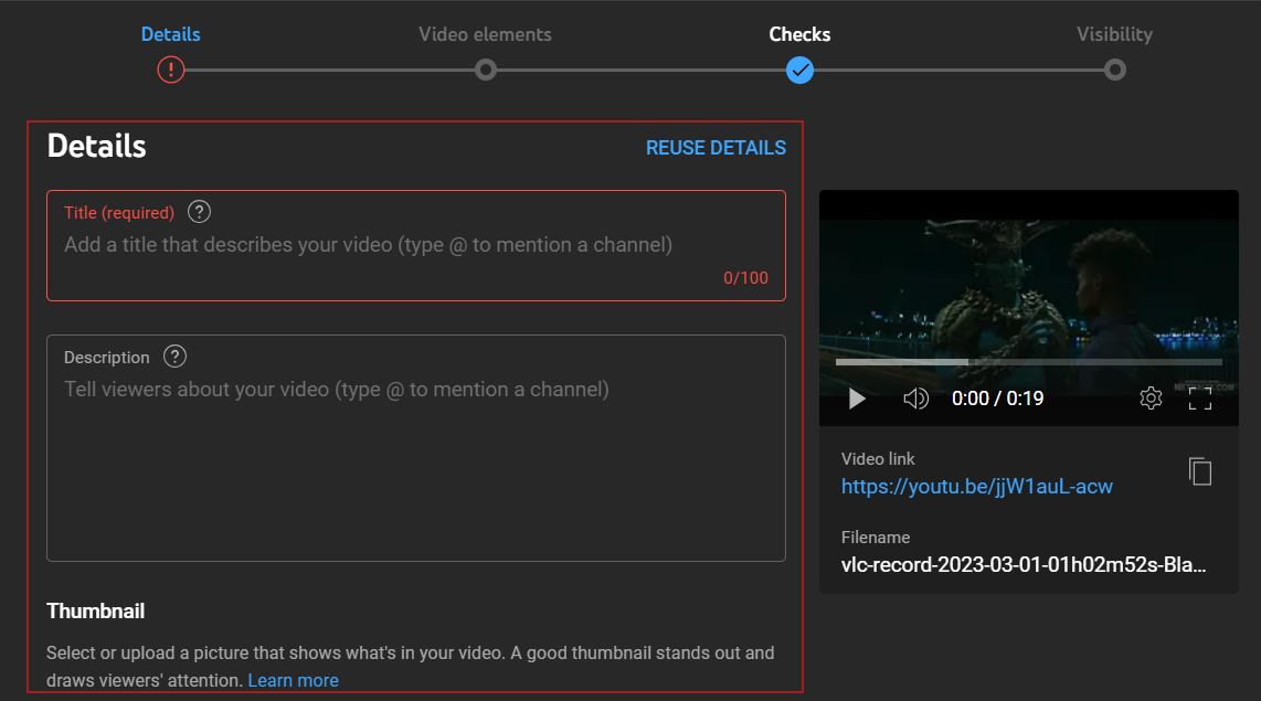 Step 5: Before publishing your video, optimize it for search by including relevant keywords in the title, description, and tags. You can also add a custom thumbnail to make your video more appealing.