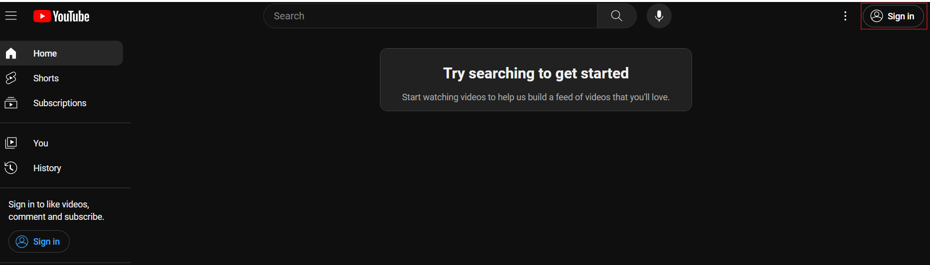 Step 1: Go to YouTube and click the "Sign in" button at the upper right corner of the YouTube homepage. You will need a Google account to sign in. Make sure to create a Google account if you do not have one.