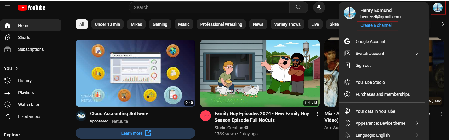 Step 2: Once you have signed in, click on your profile picture or Avatar in the top right corner of the YouTube homepage. From the dropdown menu, select "Create a Channel."