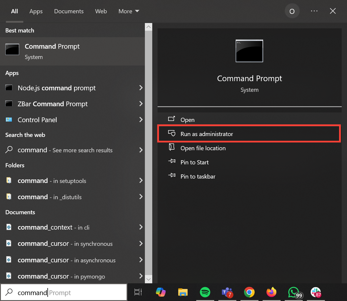 Step 1: From the start bar, find and run the Command Prompt as an administrator.
