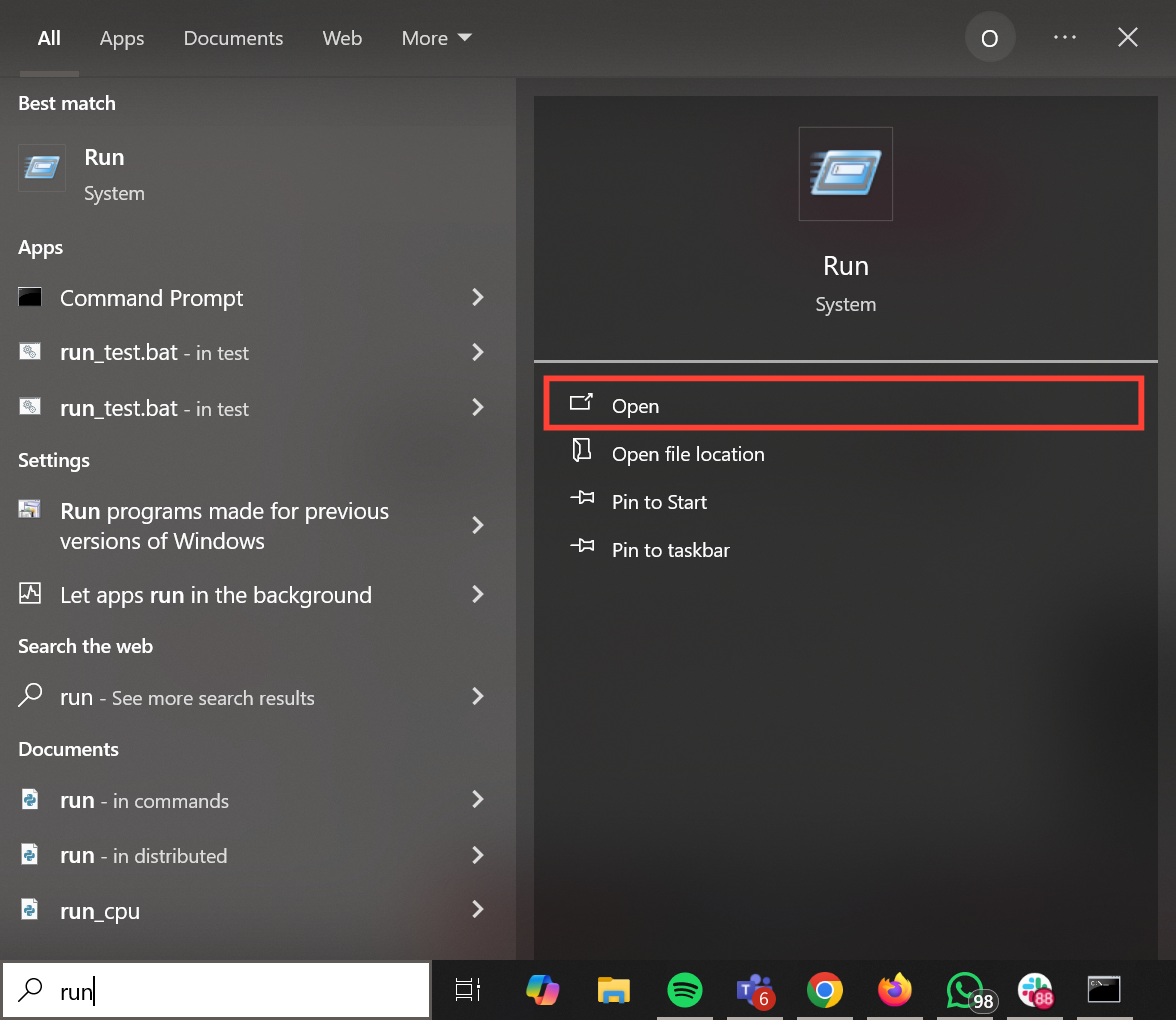 Step 1: Go to the start bar, search for Run, and open the application.