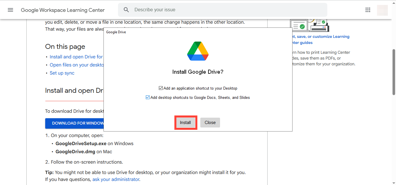 Step 4. Install Drive for Desktop