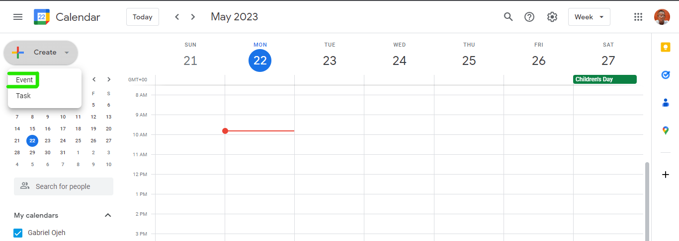 - Select Create Event.