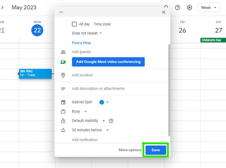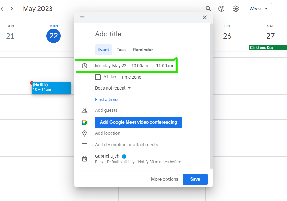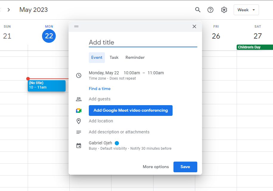 5. Your Google Calendar will open in a new tab. When creating an event, the title will be automatically filled with the title of the email. However, if you wish to modify it, simply click on the title and make the desired changes.