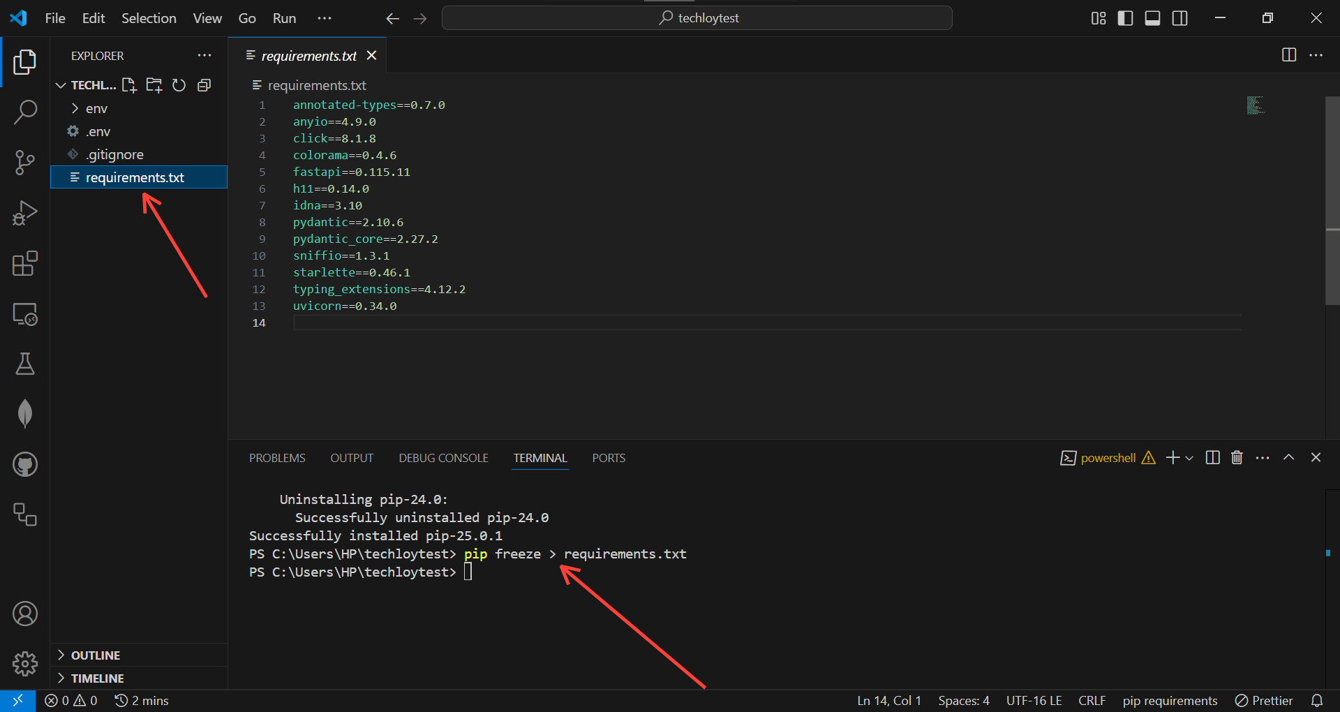 Now that you have a requirements.txt file, you or anyone else working on the project can install all dependencies with a single command: