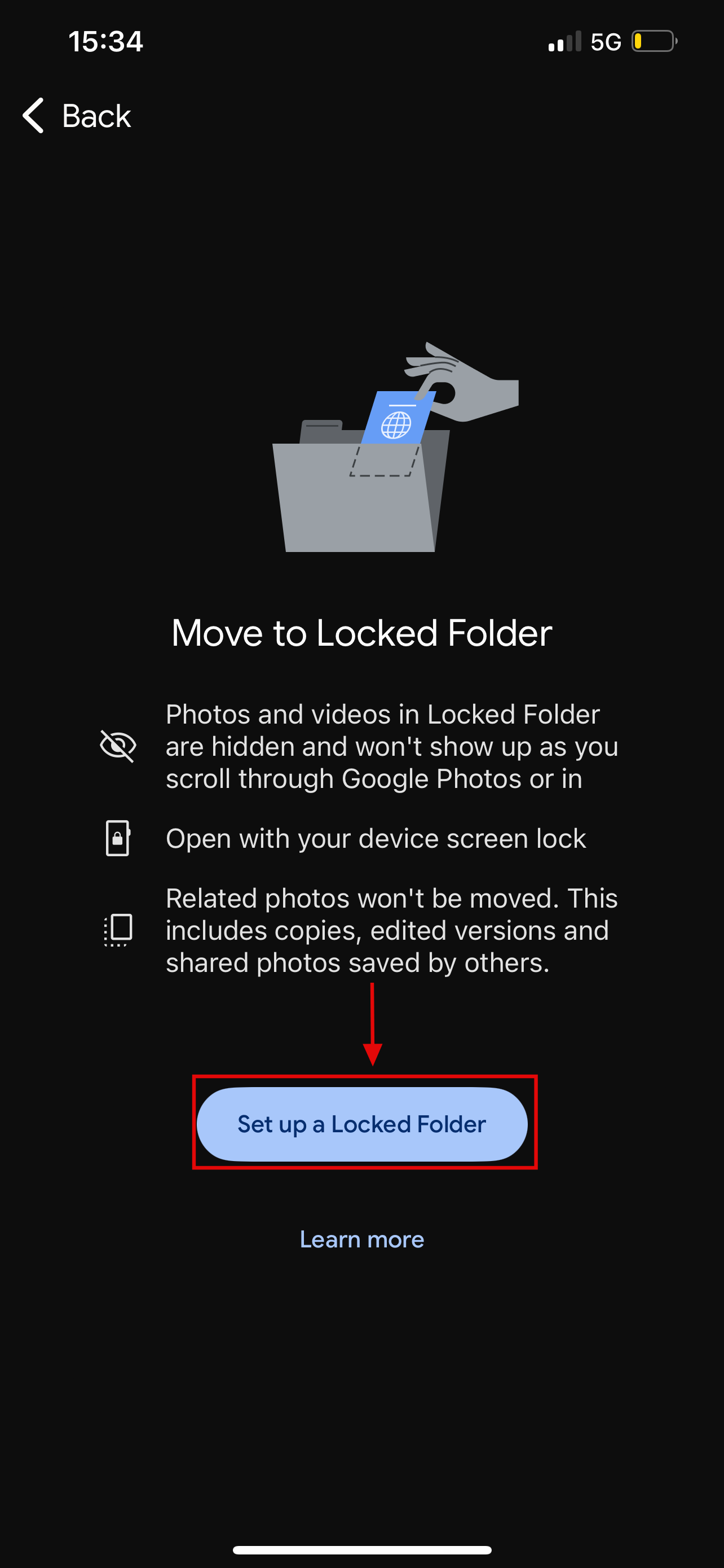 Step 3: Select Set up Locked Folder. Then, follow the on-screen instructions to finish the creation of the folder