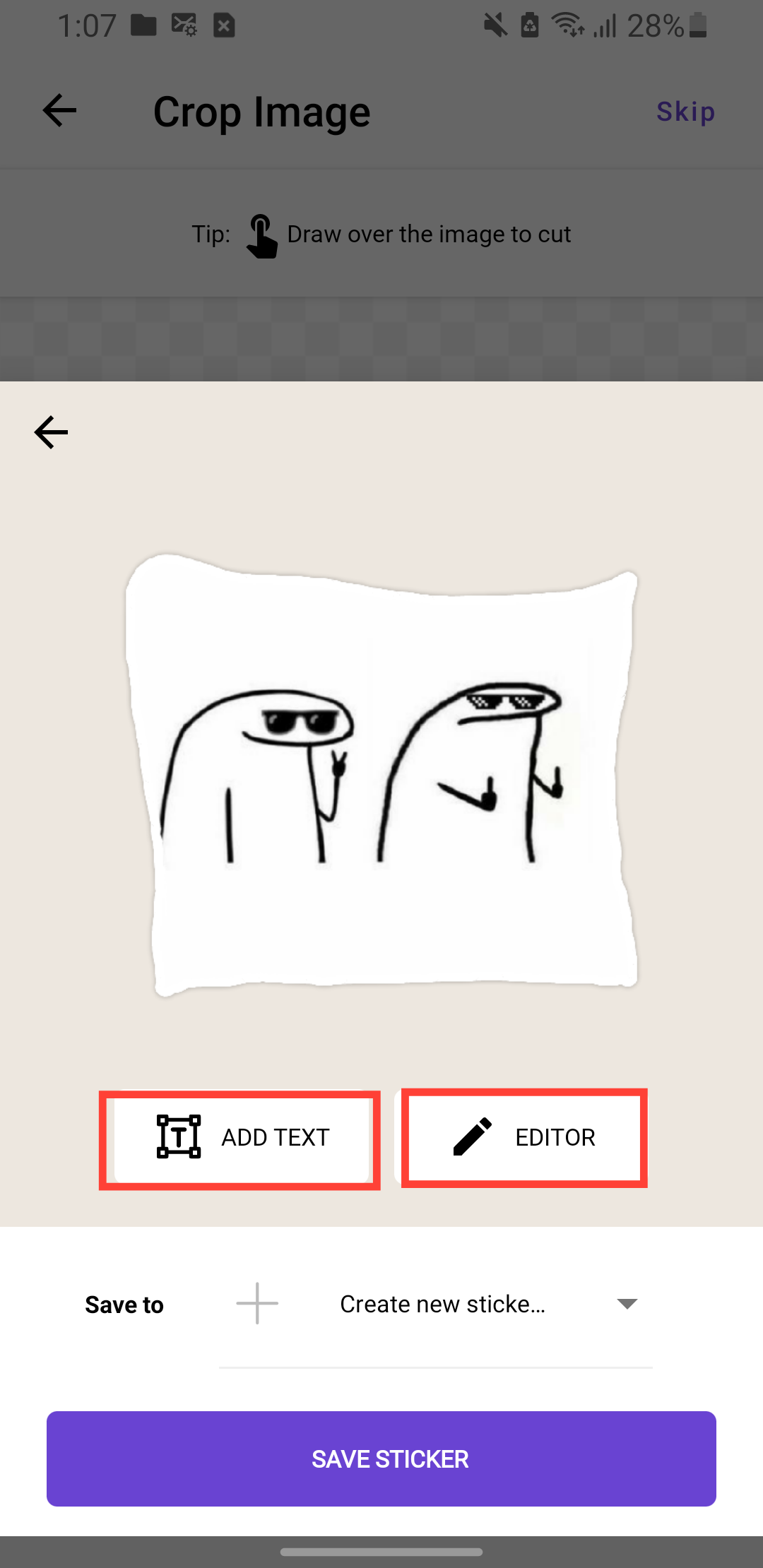 Step 5: You have a lot of options, like drawing over the image to cut out the parts you want. Select "Add text" to just add text, or "Editor" to explore more editing options.