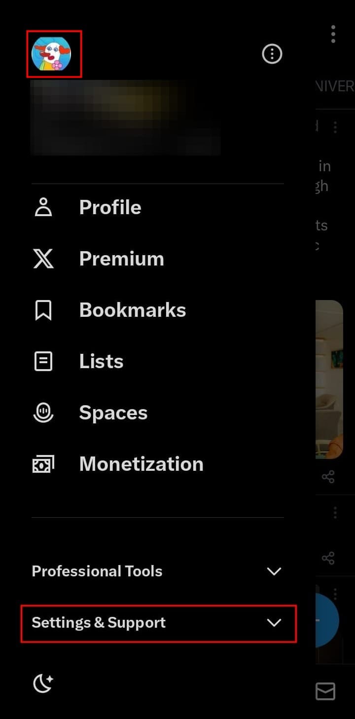 - Tap on your profile picture at the top left and select "Settings & Support"