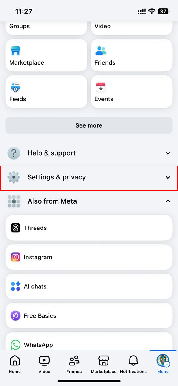 Step 2: Select "Settings & privacy"