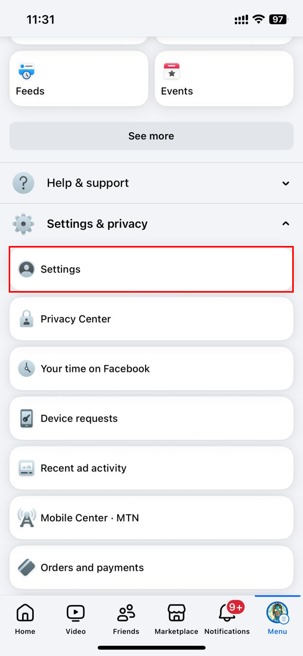 Step 3: Under Settings & privacy, select "Settings"