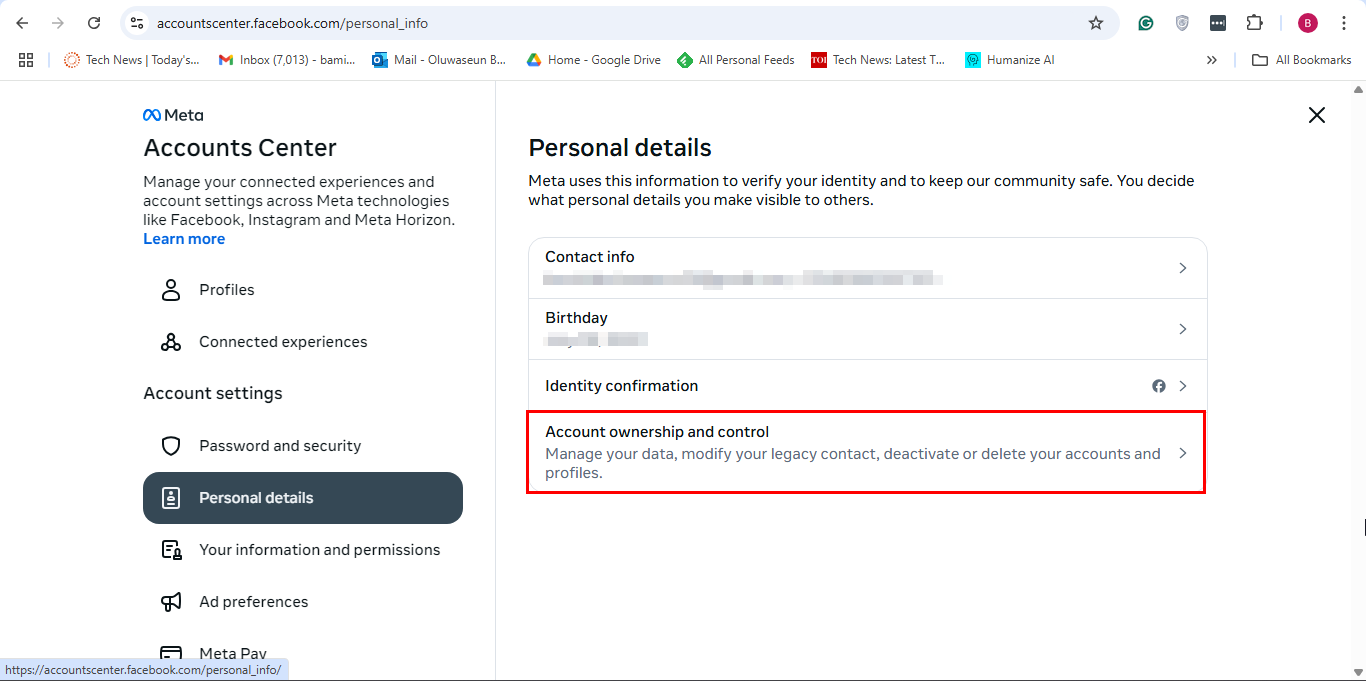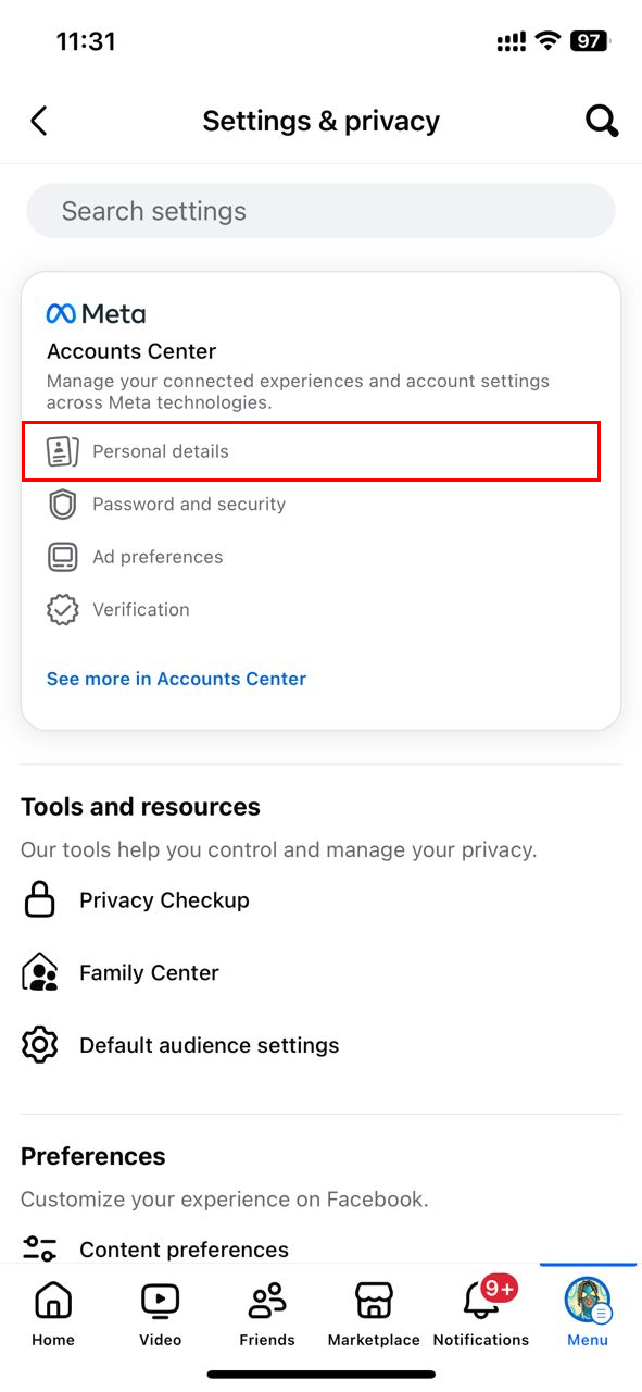 Step 4: In the Account Center section, select "Personal details"