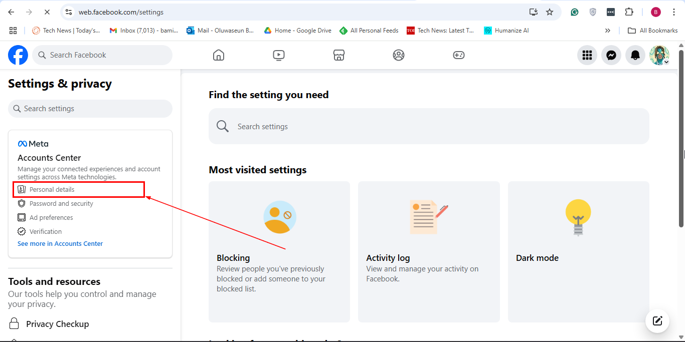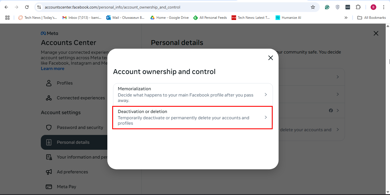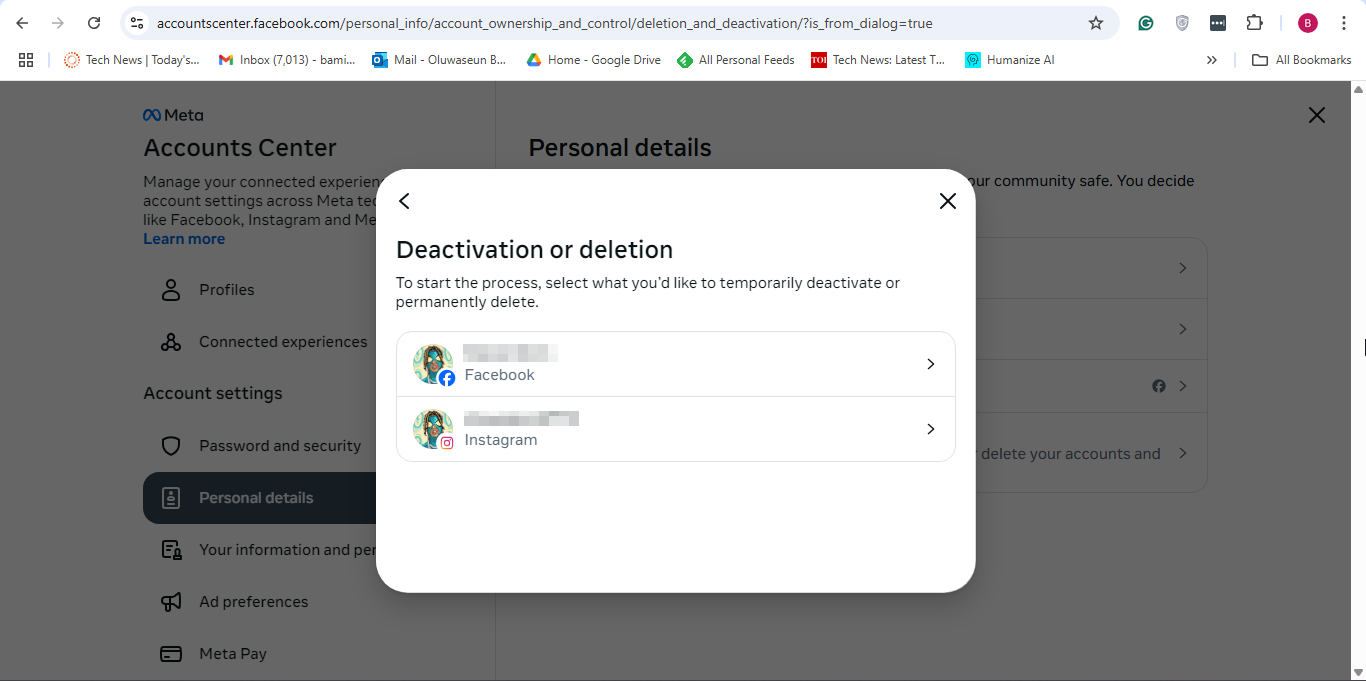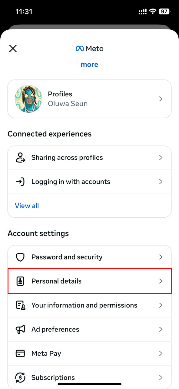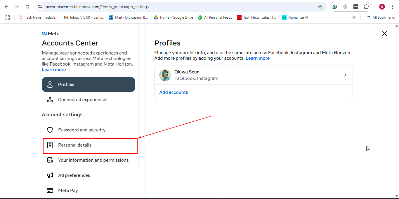 Step 4: Following that, click "Personal details" under the Accounts Center section