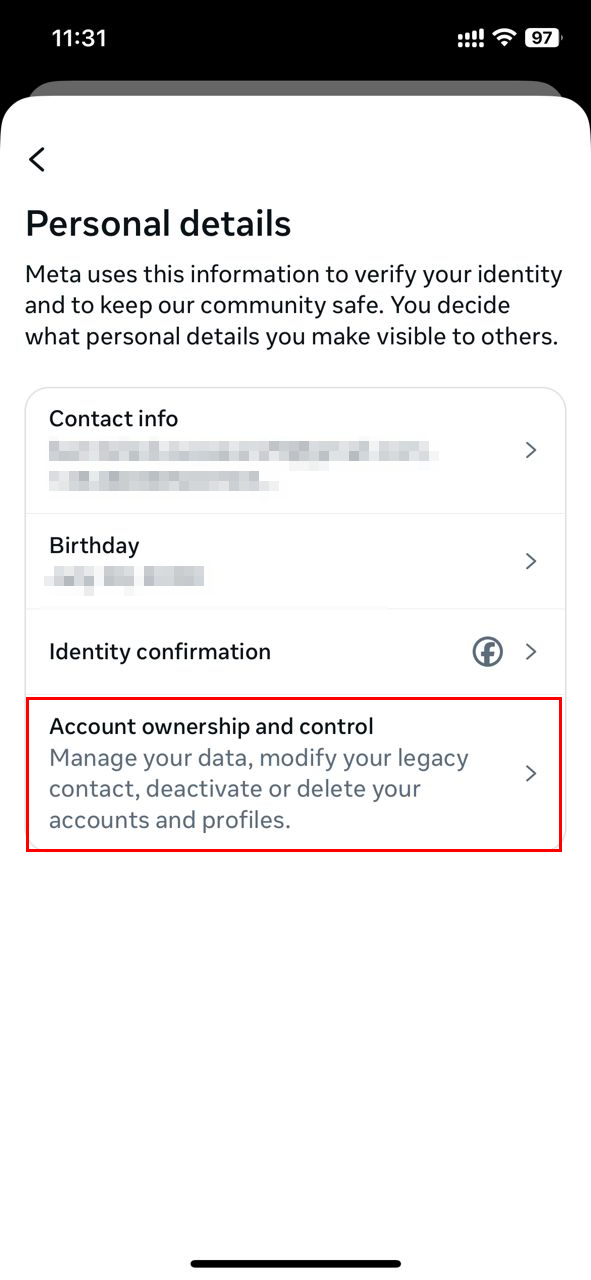 Step 6: Next, tap "Account ownership and control"