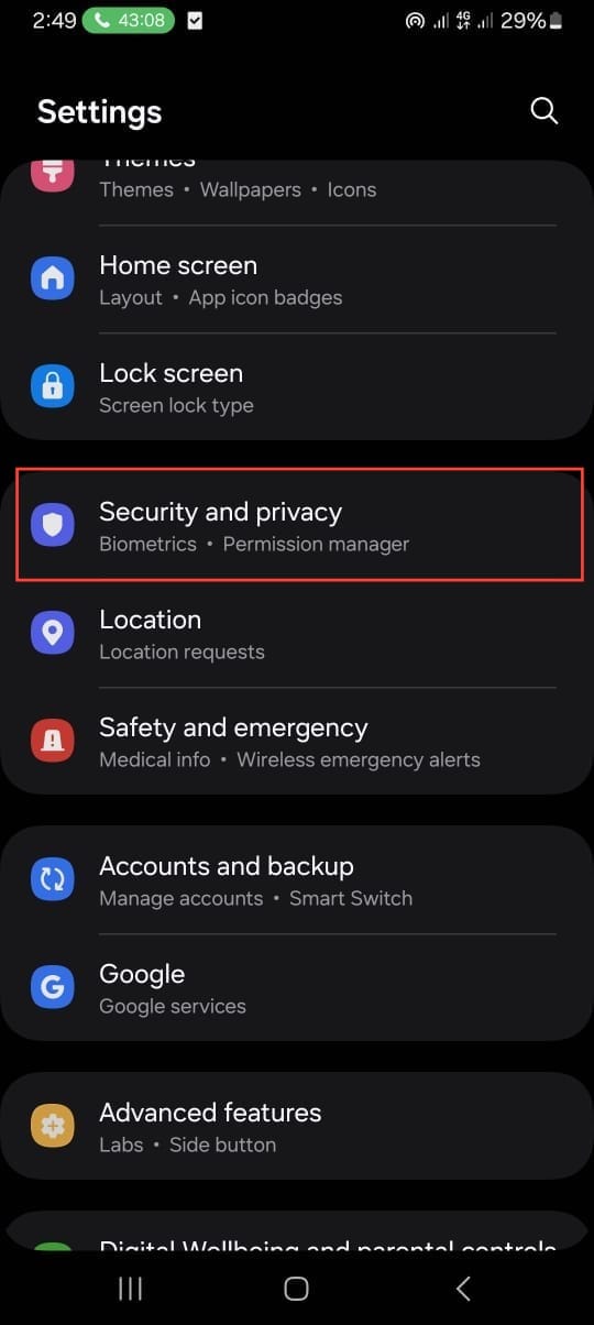 Step 1: Open Settings on your Samsung phone and select Security and privacy.
