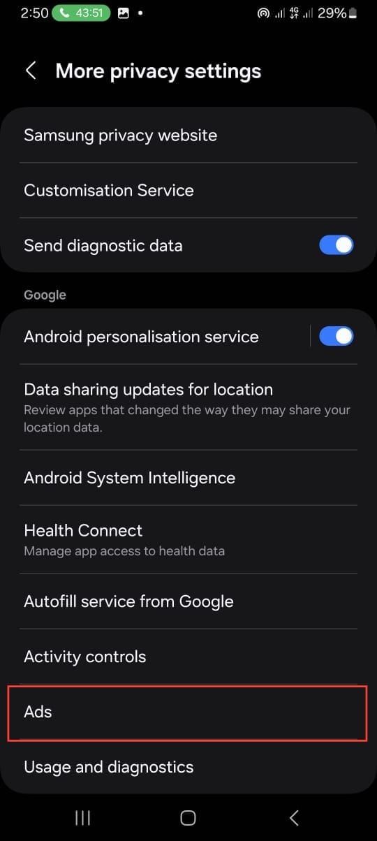 Step 3: Tap Ads.