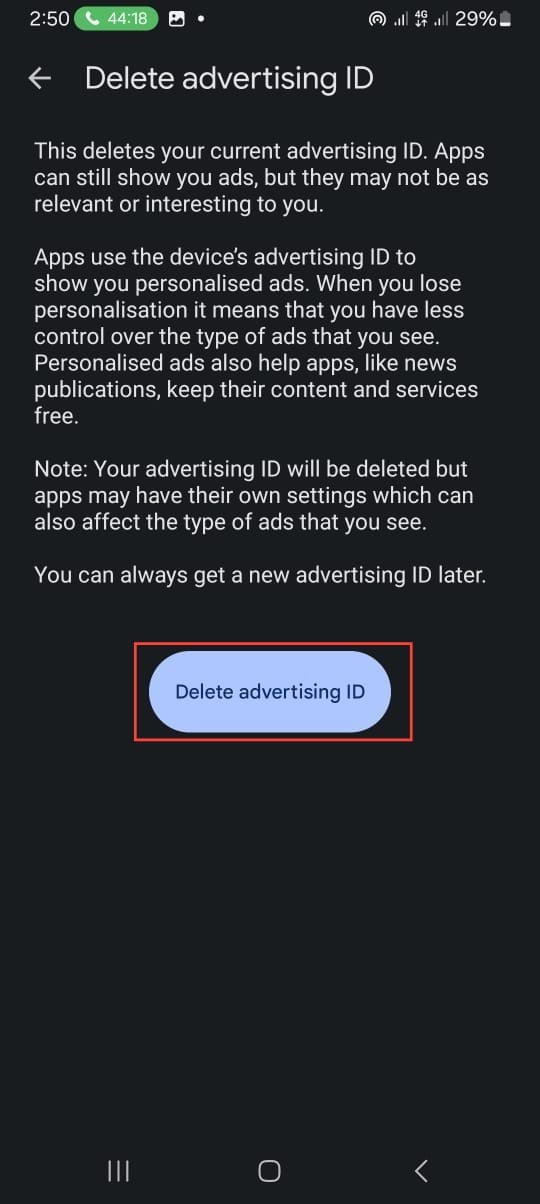 Step 4: Choose Delete advertising ID