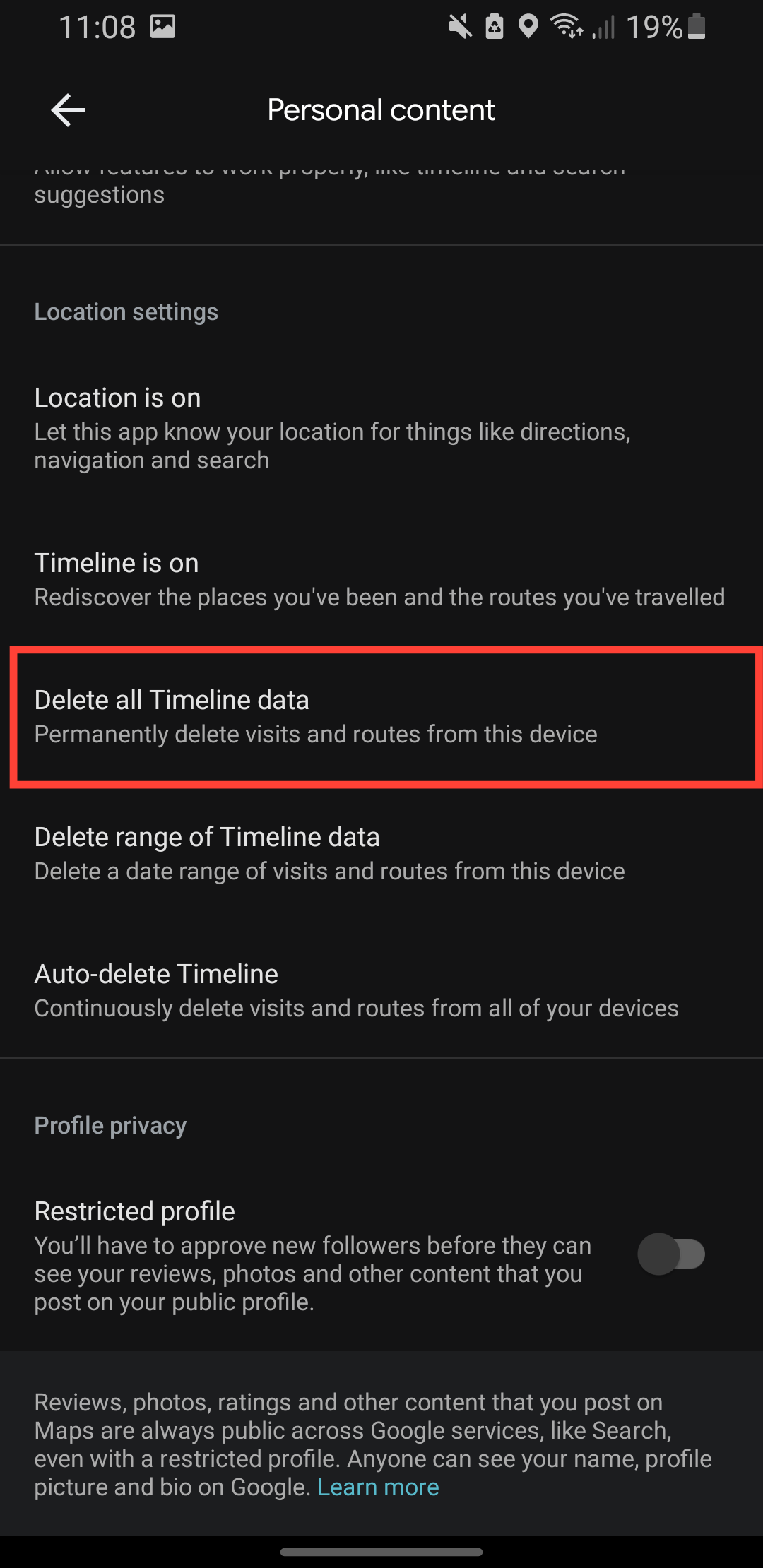 - Select "Delete all Timeline data" to delete all your location data.