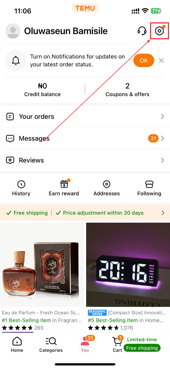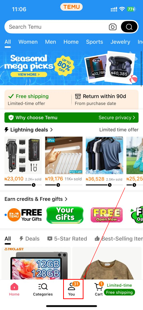 Step 1: Open the Temu app and tap the You tab at the bottom