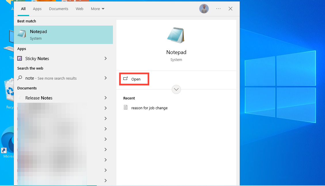 Step 1. Open the Start Menu on your PC and type "Notepad" in the search bar. Then, tap "Open".
