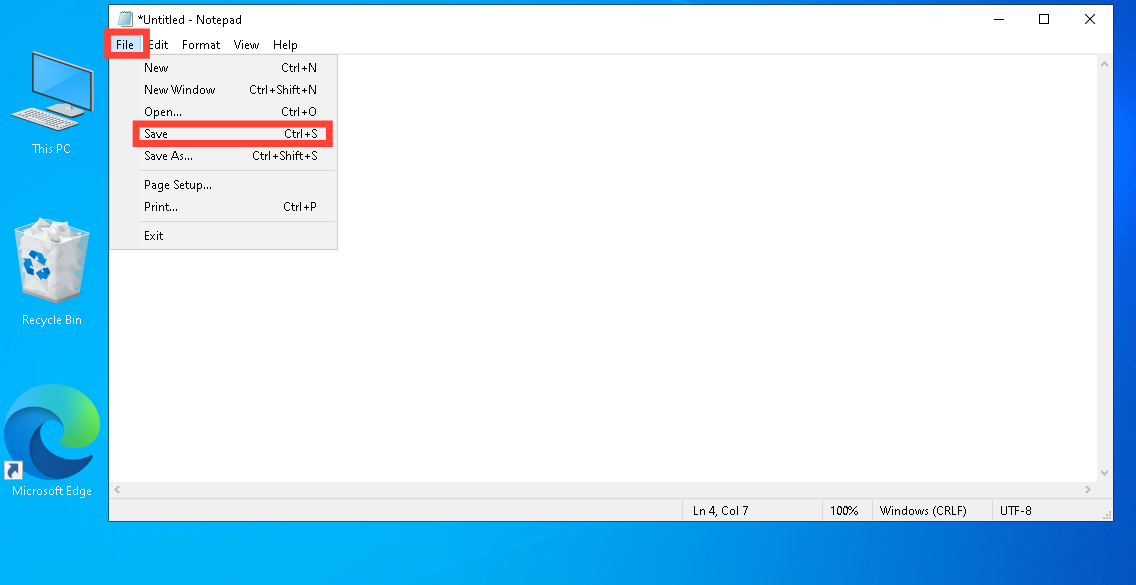 Step 3. Click the "File" menu in your Notepad and select "Save."