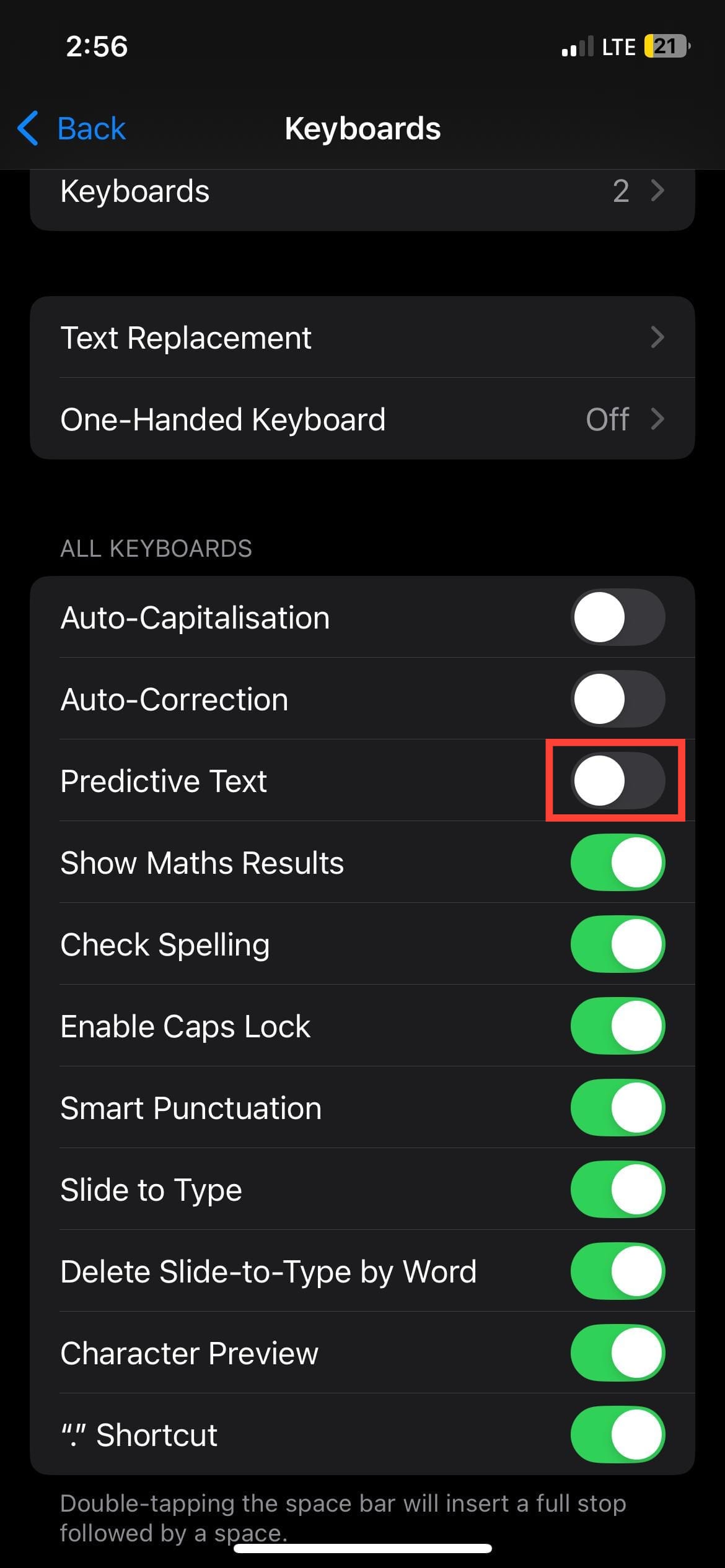 Step 3: Toggle off "Predictive Text"