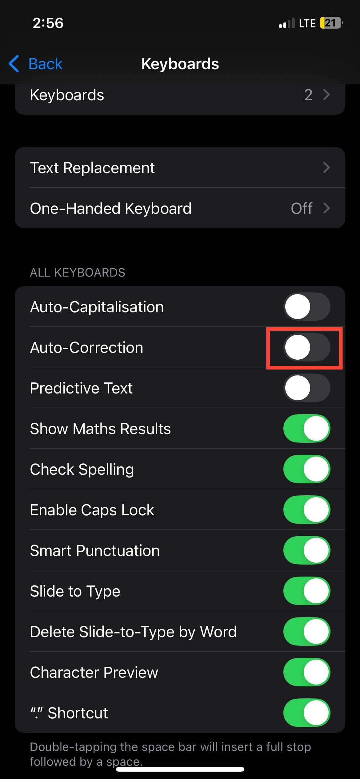 Step 3: Toggle off “Auto-Correction”
