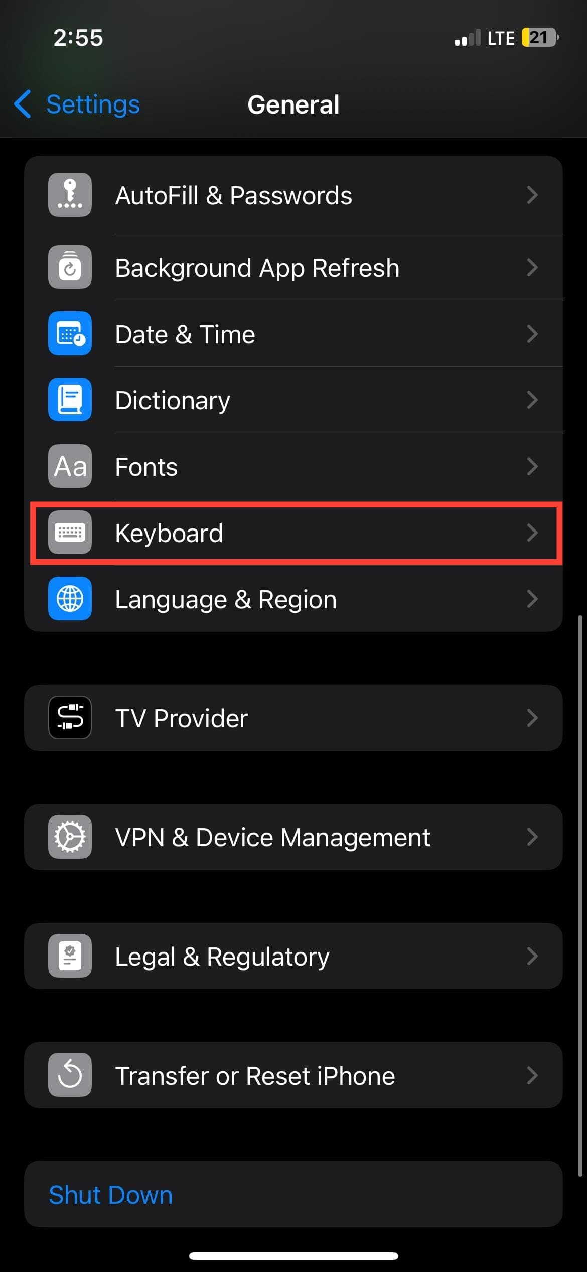 Step 2: Tap "Keyboard"