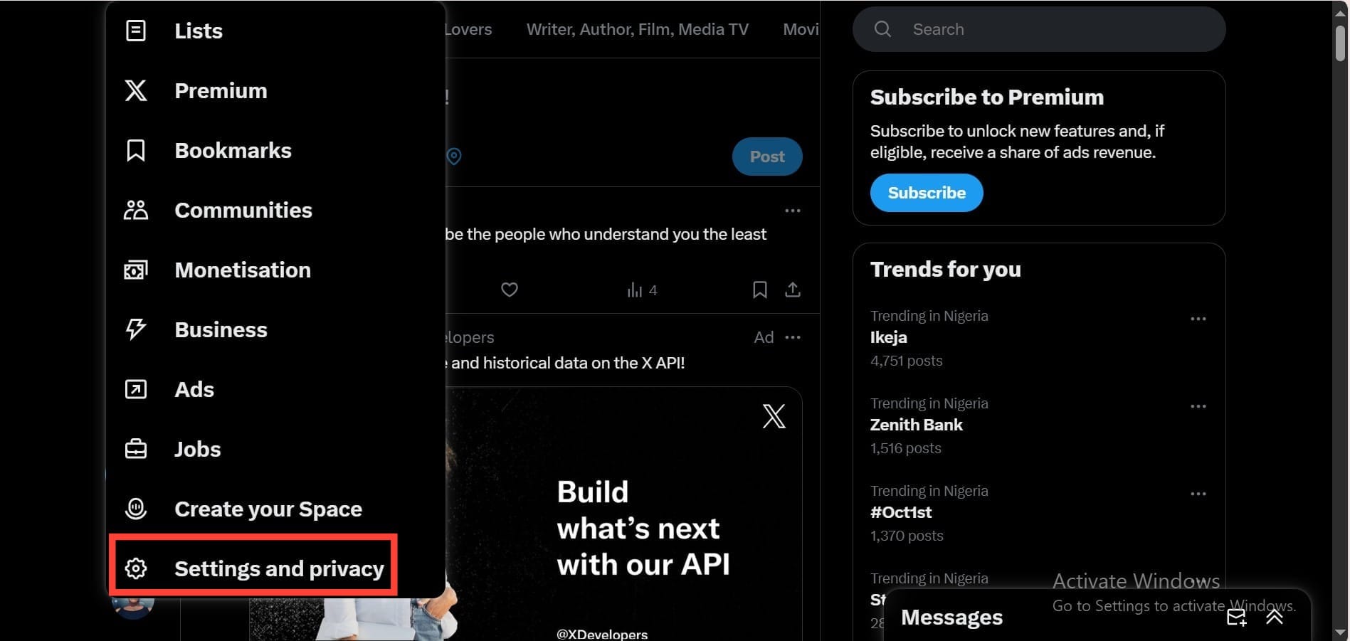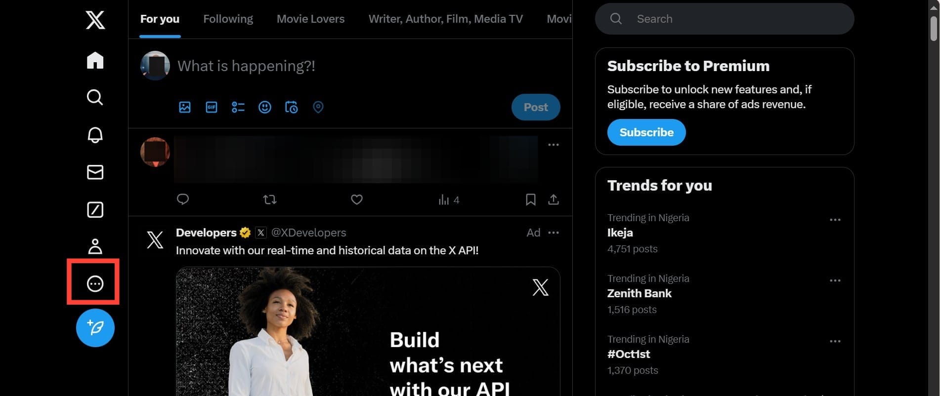 Step 1: Log into X in your web browser. Then, click "More" in the side panel.
