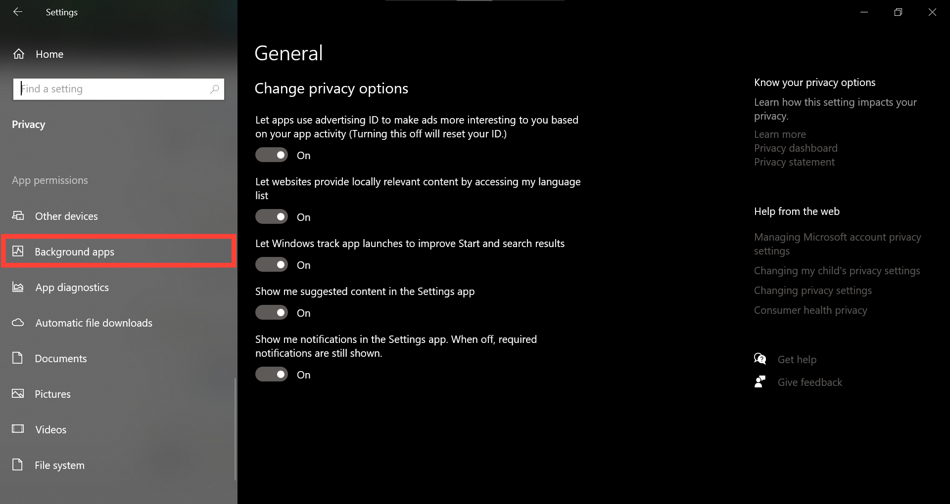 Step 3: Scroll down and click "Background Apps" under "App permissions"