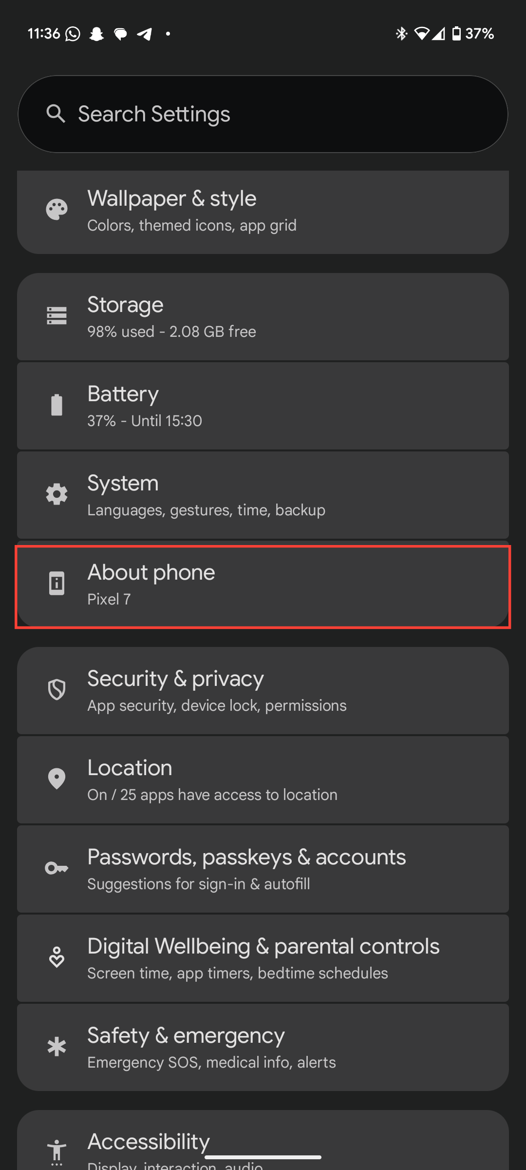 Step 1: Go to settings on your phone and scroll down and select About Phone.