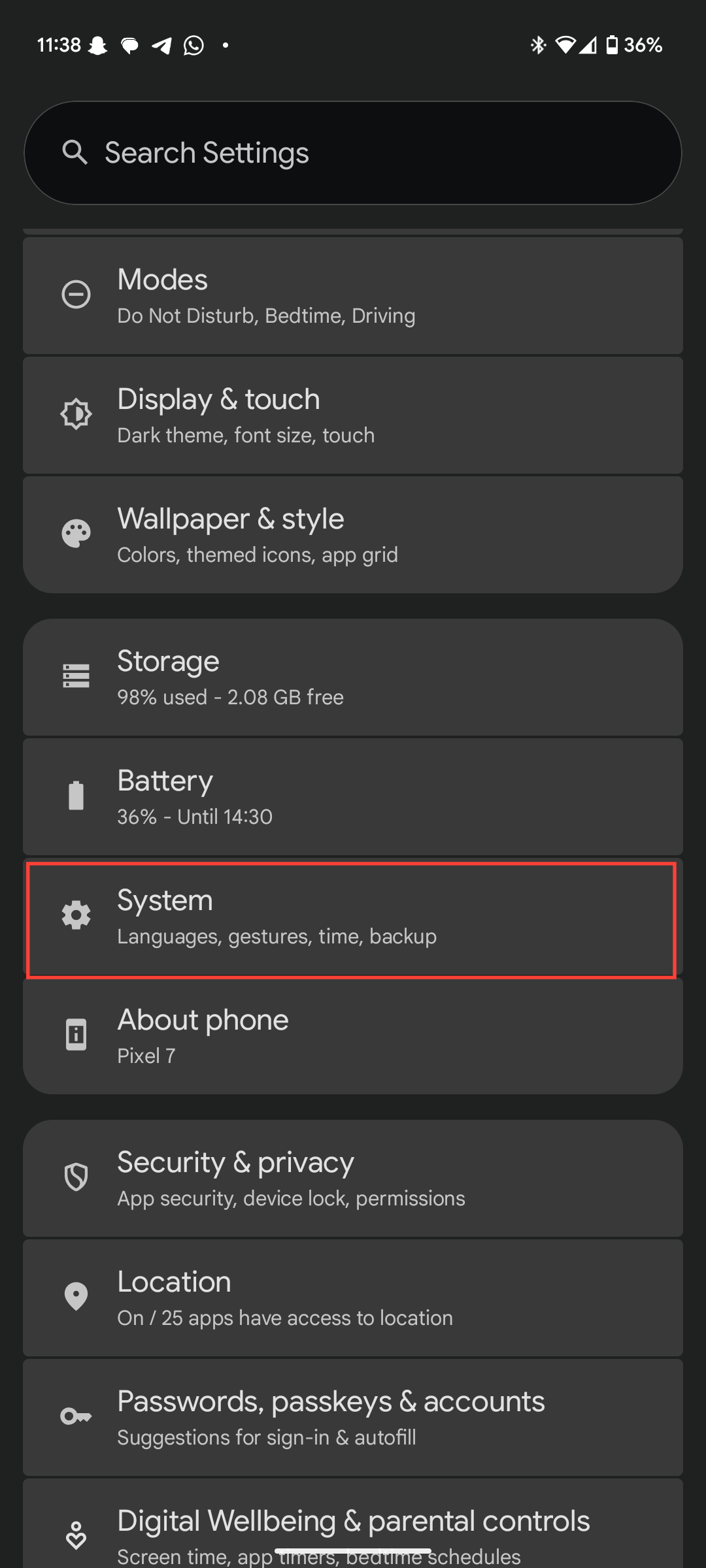 - If you use a Pixel device, it's a bit different. Go back to the settings main menu and select System.