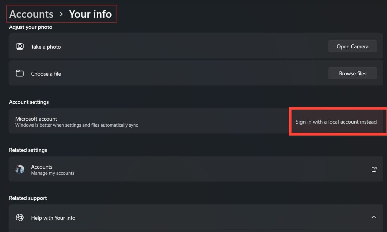 - Select “Sign in with a local account instead”.