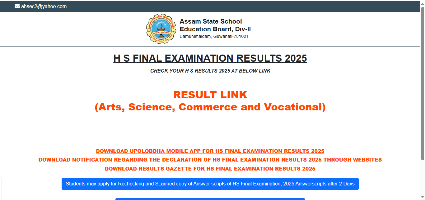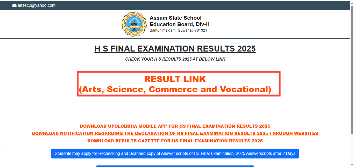 Where to Check Assam HS Result 2025