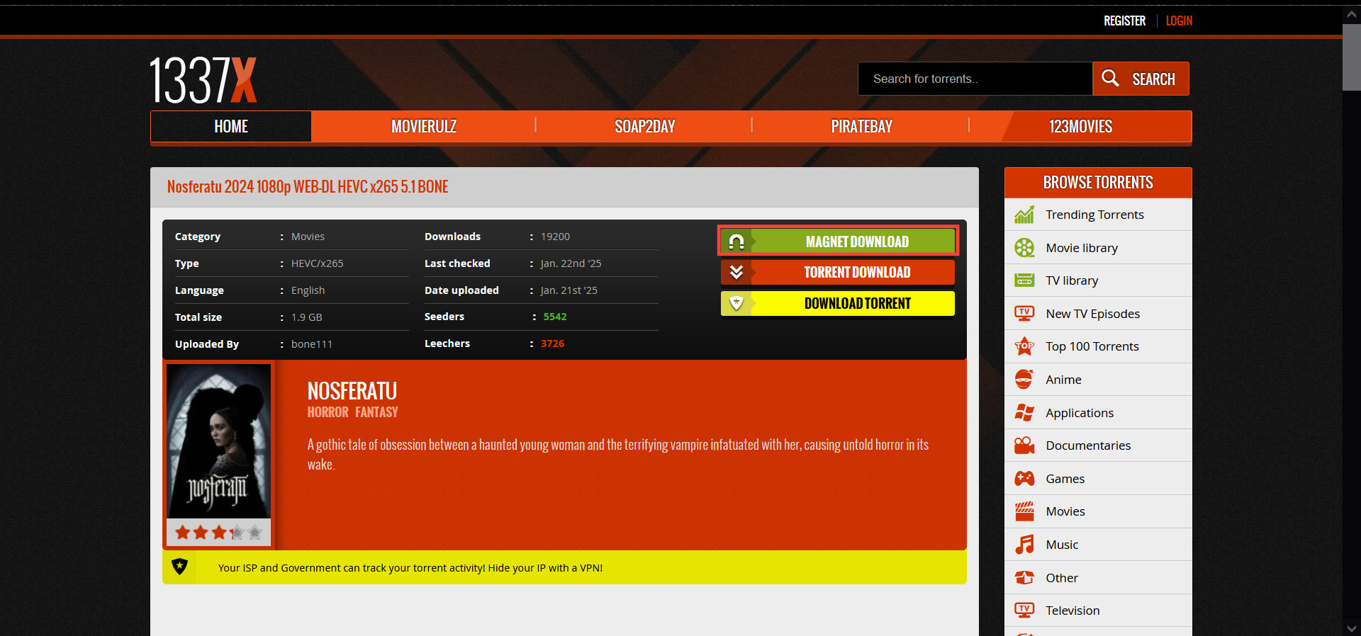 - Step 7: Once you click on the file, you'll be presented with options like "Download Torrent" and "Magnet Download".