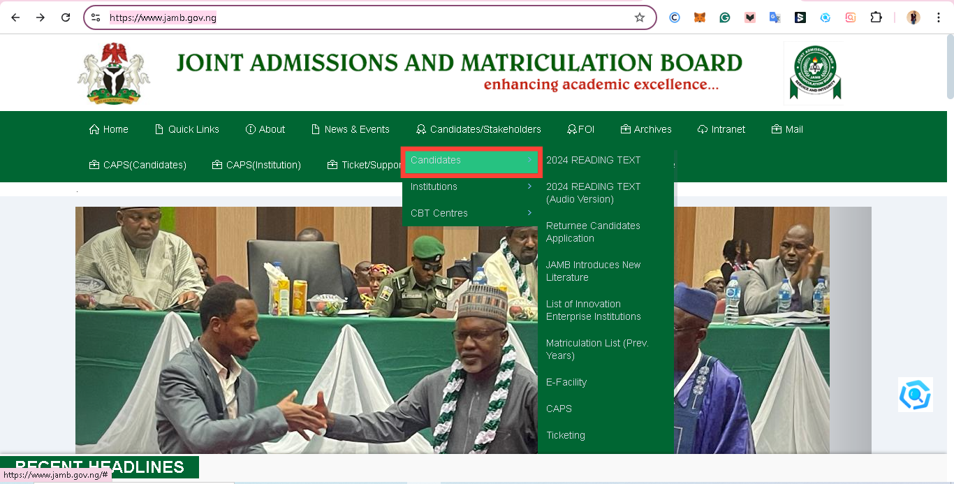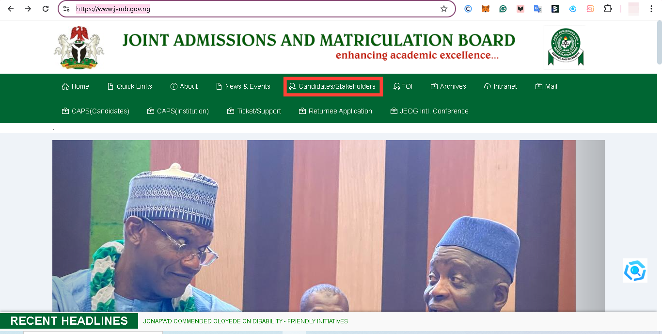 Step 1. Open your web browser and go to the official JAMB website.