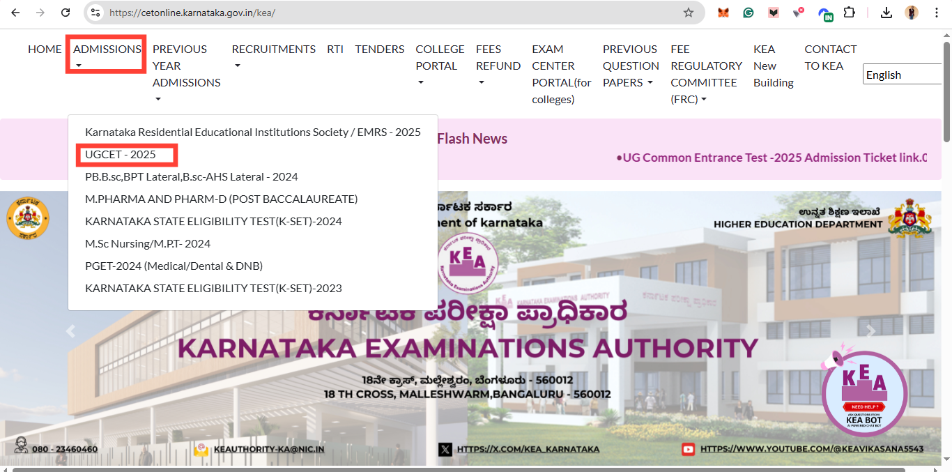 Step 2. On the homepage, go to the "Admissions" section and select "UGCET 2025."