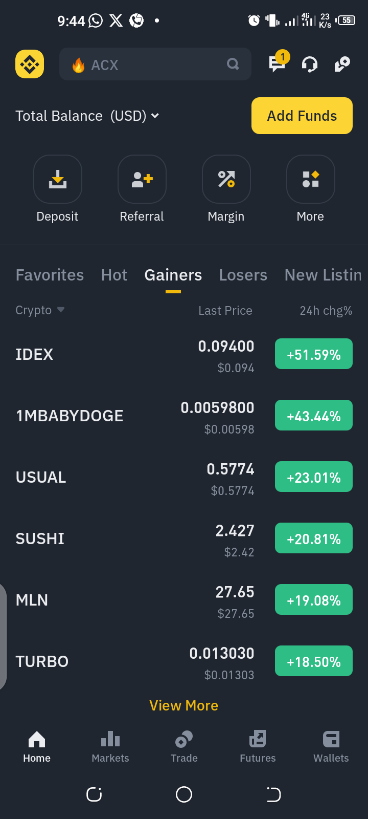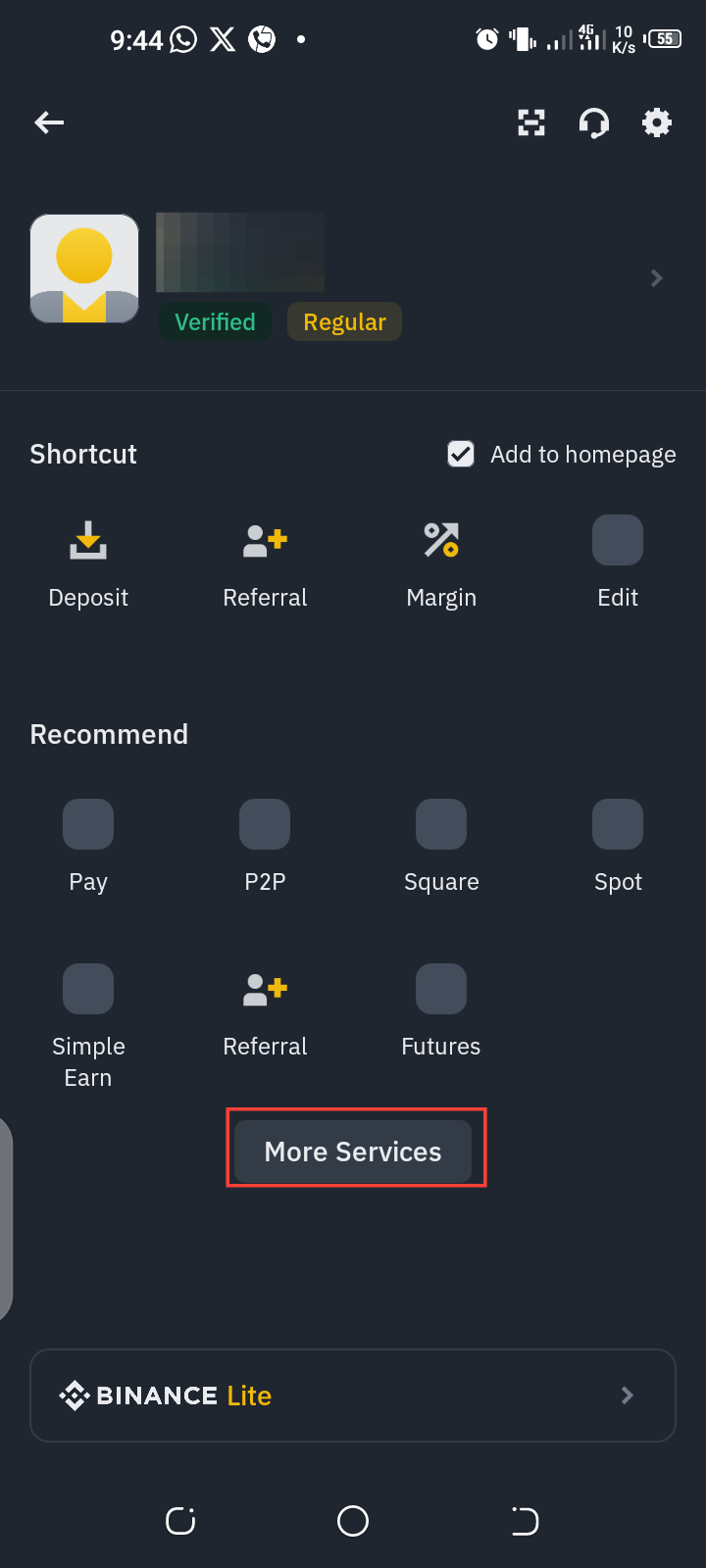 On the Binance home page, tap the Binance icon in the top right corner to view the app’s options menu.