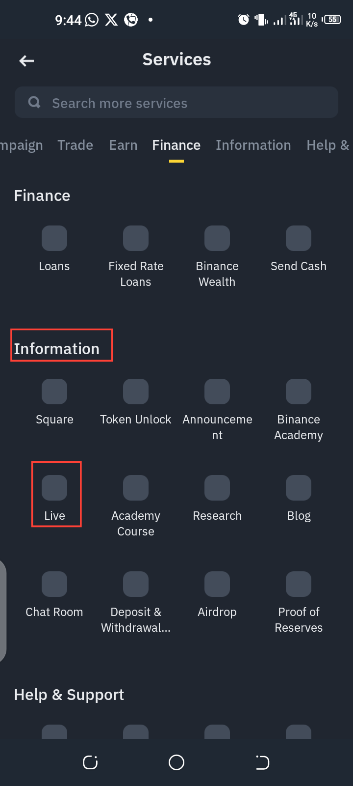 Under the "Information" tab, choose "Live" to access Binance Live videos. This takes you to a page filled with educational and engaging crypto-related live streams.