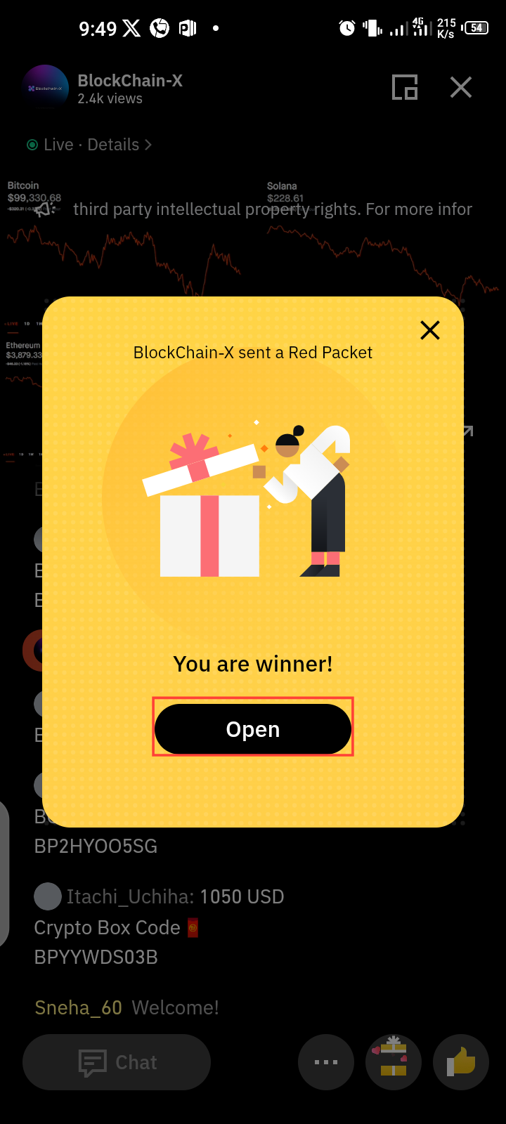 Next, follow the host. A timer will appear—wait for it to finish counting down. Once the timer is done, tap “Open” to claim your crypto rewards. Immediately the reward will be shown to you and directly deposited in your funding wallet.