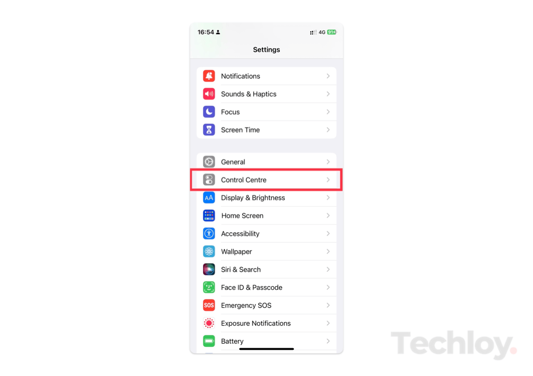- Go to Settings and tap Control Centre